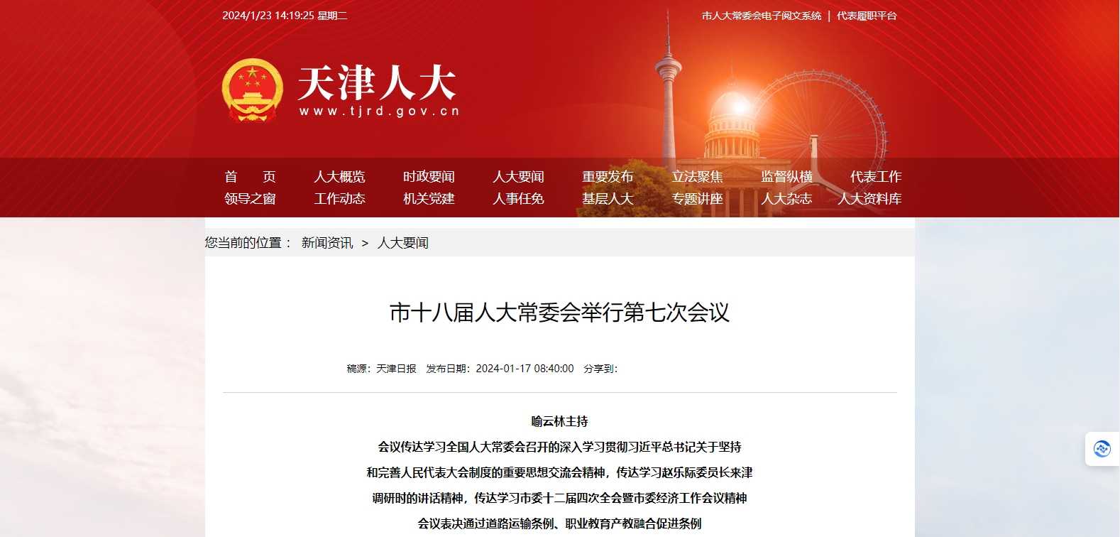 日前,天津市十八屆人大常委會第七次會議表決通過了《天津市職業教育產教融合促進條例》(下稱《條例》),這是全國首部有關職業教育產教融合的地方性法規,自2024年3月1日起施行。《條例》的制定和施行,對于全面提高天津市職業教育質量、擴大就業創業、推進經濟轉型升級、實現高質量發展必將產生重要作用。